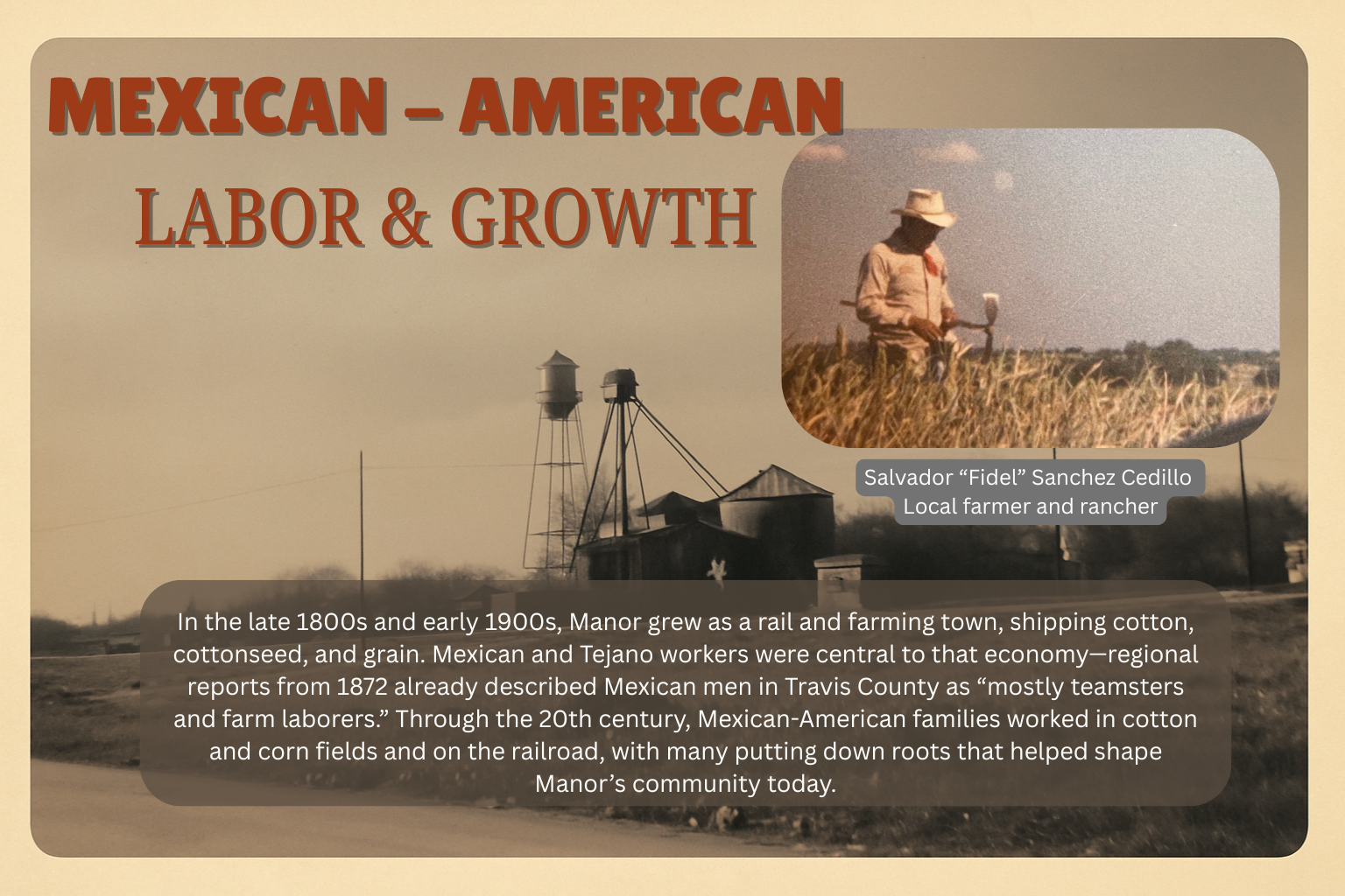Hispanic and Latino families have been part of this story from the beginning. For generations, they have worked the land, opened businesses, built neighborhoods, served in public life, and passed down traditions that continue to shape Manor’s identity today. From small family shops and construction crews to restaurants, service businesses, and entrepreneurs, Hispanic residents have helped power Manor’s economy and define its character.